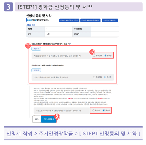그리고 전자서명 및 장학금 받을 계좌를 입력하면 완료됩니다.