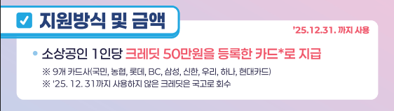 신청 후 선정되면 본인이 지정한 카드사로 50만 원 크레딧이 자동 등록됩니다.