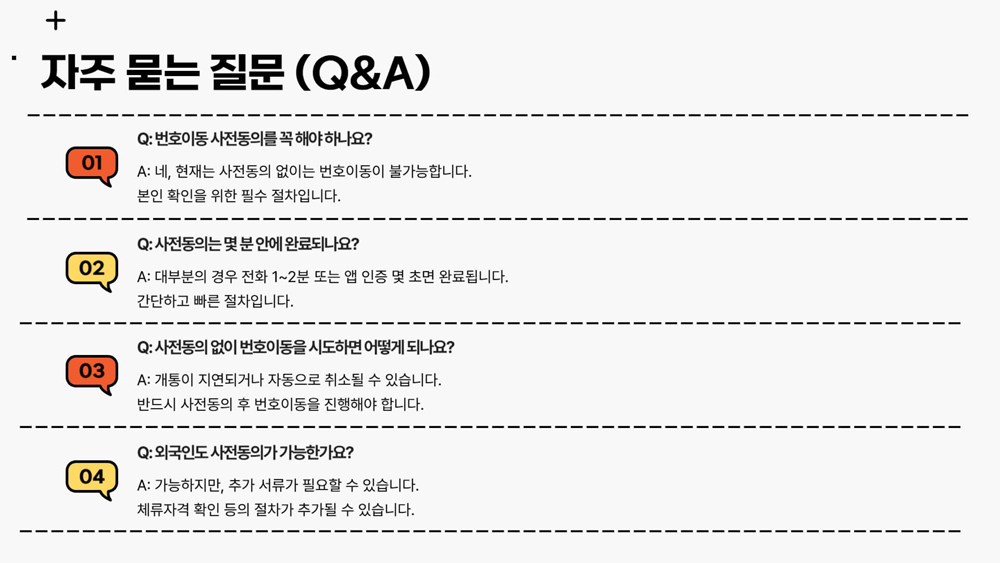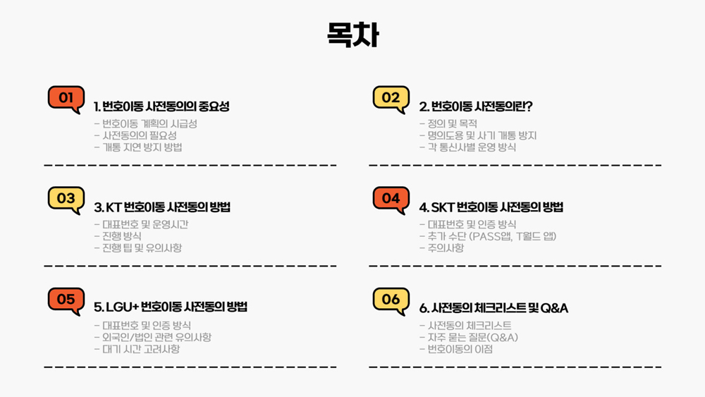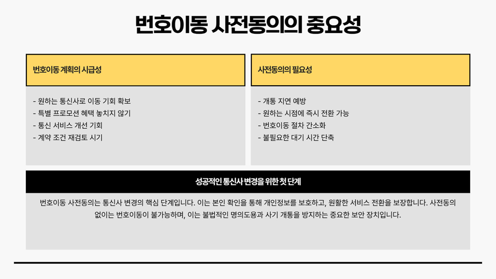 KT, SKT, LGT 각 통신사의 사전동의 절차만 정확히 이해하면 누구나 쉽고 빠르게 이동할 수 있습니다.